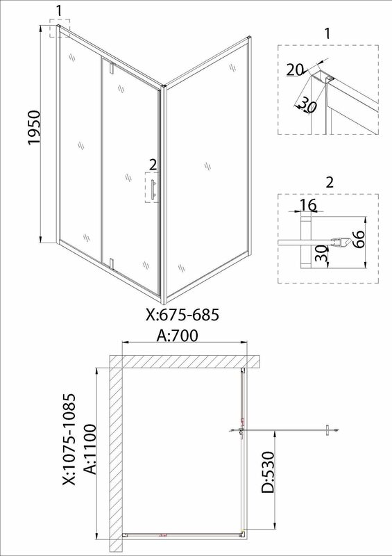 Дверь в нишу Niagara Nova NG-83-11AB (110х195) 1 место