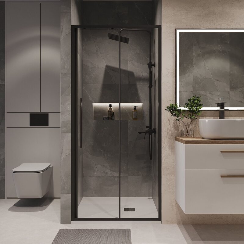 Раздвижные двери — это универсальная конструкция, занимающая минимум места в душевой кабине. Они удобны и функциональны, а также они предотвращают попадание воды за пределы пространства для мытья. Такая форма дверей может успешно герметизировать бокс, так что ни одна капля не окажется на полу. К тому же данная конфигурация не требует много места, что позволяет сэкономить пространство в ванной. Раздвижные двери не помешают уборке, ведь они не загораживают доступ к стенам и пространству душевой — в этом их неоспоримое преимуество.