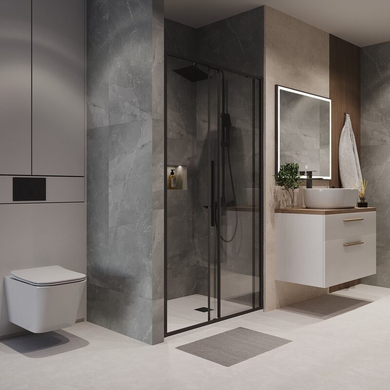 Раздвижные двери — это универсальная конструкция, занимающая минимум места в душевой кабине. Они удобны и функциональны, а также они предотвращают попадание воды за пределы пространства для мытья. Такая форма дверей может успешно герметизировать бокс, так что ни одна капля не окажется на полу. К тому же данная конфигурация не требует много места, что позволяет сэкономить пространство в ванной. Раздвижные двери не помешают уборке, ведь они не загораживают доступ к стенам и пространству душевой — в этом их неоспоримое преимуество.