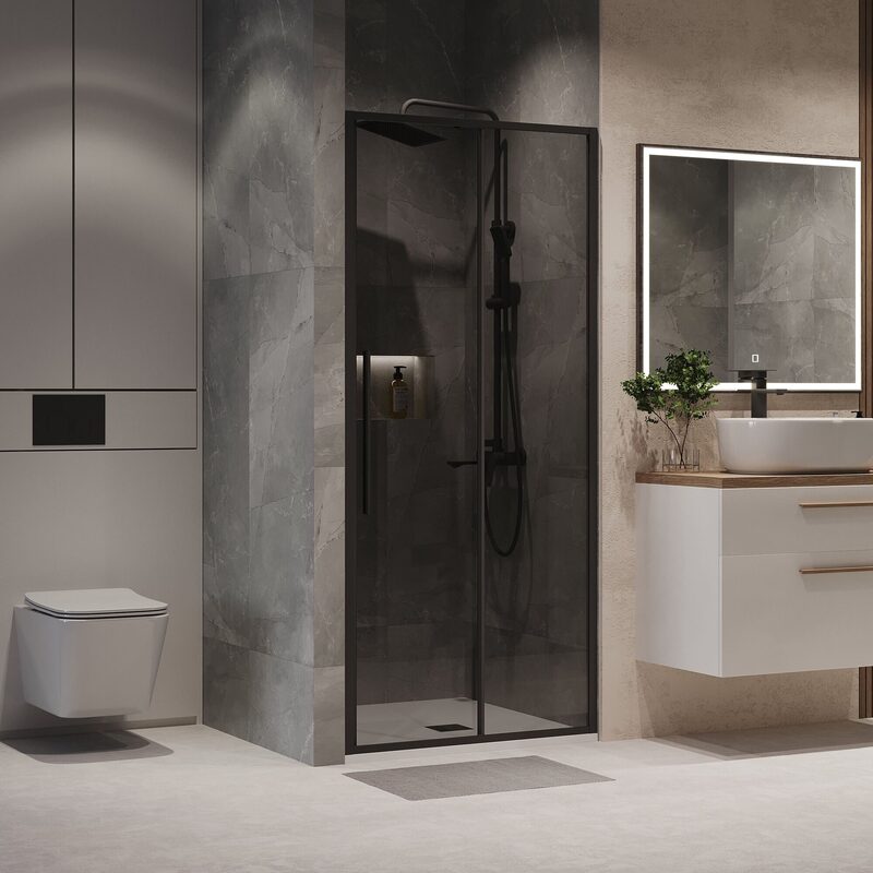 Раздвижные двери — это универсальная конструкция, занимающая минимум места в душевой кабине. Они удобны и функциональны, а также они предотвращают попадание воды за пределы пространства для мытья. Такая форма дверей может успешно герметизировать бокс, так что ни одна капля не окажется на полу. К тому же данная конфигурация не требует много места, что позволяет сэкономить пространство в ванной. Раздвижные двери не помешают уборке, ведь они не загораживают доступ к стенам и пространству душевой — в этом их неоспоримое преимуество.