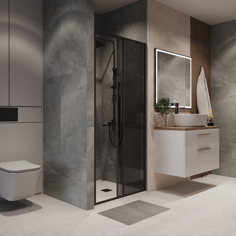 Дверь в нишу Niagara Nova NG-85-11TB (110*195) черный матовый, стекло тонированное, 1 место