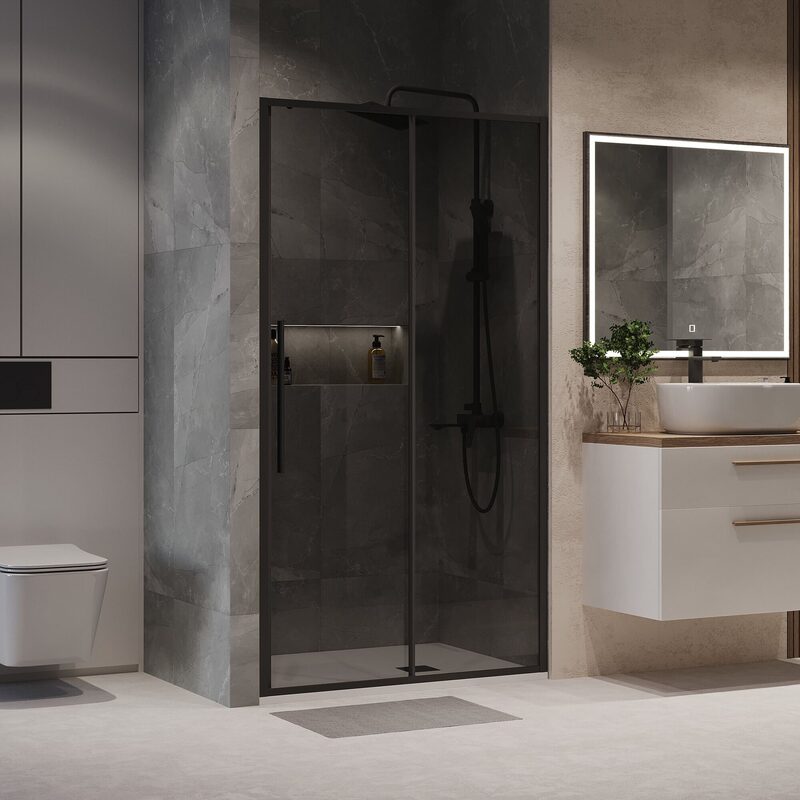 Дверь в нишу Niagara Nova NG-85-12TB (120*195) черный матовый, стекло тонированное, 1 место