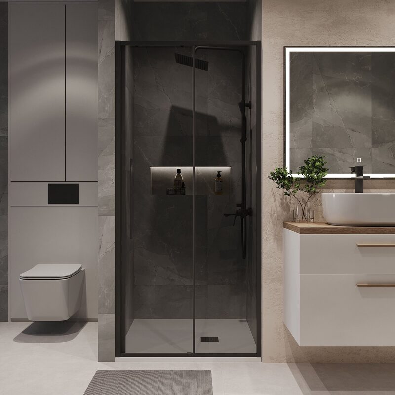 Дверь в нишу Niagara Nova NG-85-9TB (90*195) черный матовый, стекло тонированное, 1 место