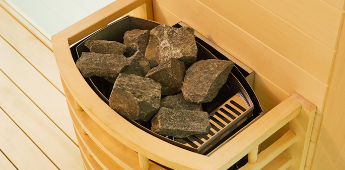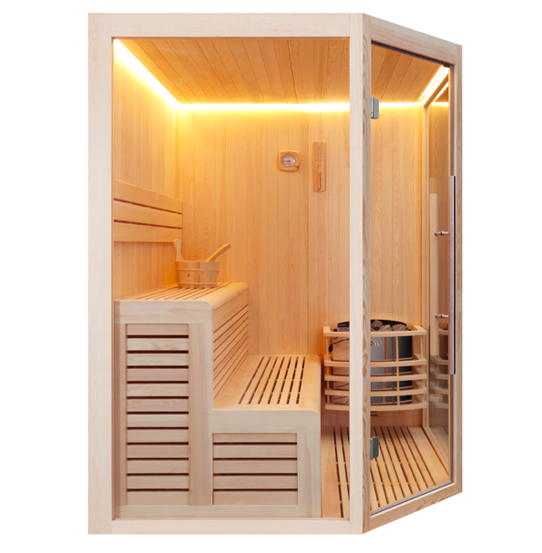 Финская сауна Frank F825 (печь СФЕРА с ПУ 7 кВт+80 кг камней КВАРЦ белые) 2 полки угловая Кедр