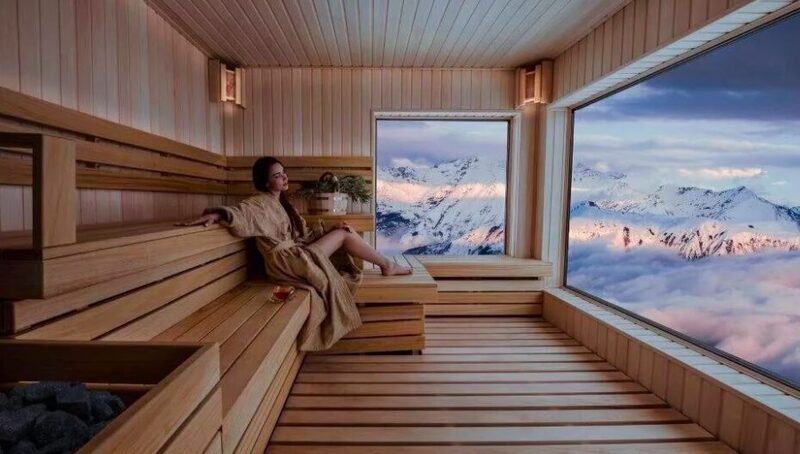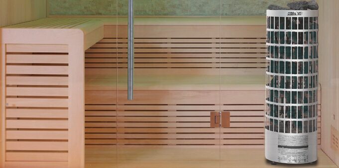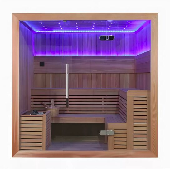 Финская сауна Frank F874 (печь СФЕРА с ПУ 9 кВт+90 кг камней КВАРЦ белые) 2 полки ширина 170 см Кедр