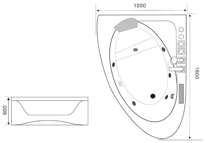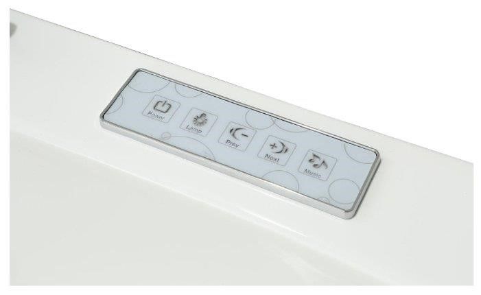 | Дополнительные характеристики | Функциональные возможности: тип управления-электронное; гидромассаж-есть; массаж спины-есть; дезинфекция-нет; озонирование-нет; подводная подсветка-есть; особенности-радио, смеситель, подголовник, установка на каркас, стеклянная вставка, левосторонняя или |