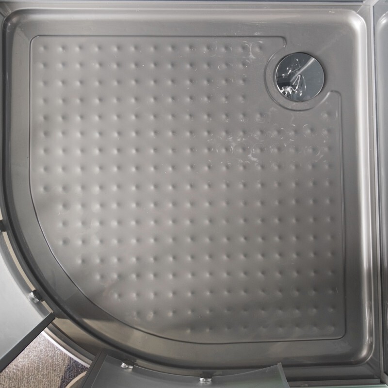 Форма поддона – четверть круга, такой вариант подходит для небольших и очень маленьких ванных. Душевой бокс монтируется в углу, максимально используя пространство. При этом кабинка остается удобной в эксплуатации, имеет достаточно места для установки душевого комплекта, небольшого раскладного сиденья при необходимости. Сегодня производители предлагают поддоны с формой четверть круга и для больших ванных. Такое решение повышает коэффициенты использования полезного пространства, позволяют правильно его организовать и сделать более практичным.