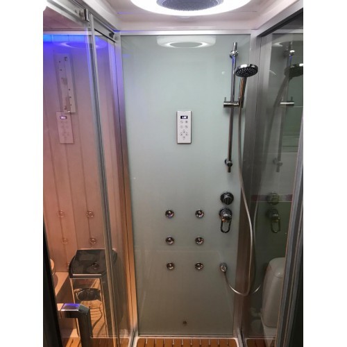 | Дополнительные характеристики | Правосторонняя Верхняя подсветка. Вертикальный гидромассаж. Система дезинфекции (только с паром). Led подсветка с хромотерапией. |