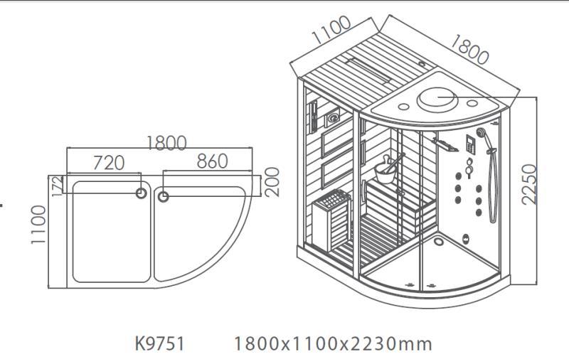 Дополнительные характеристики Правосторонняя. Толщина стекла 6 мм. Количество г/м форсунок 8. Финская сауна (сухая баня 100 *С). Турецкая сауна (баня-парная 50*С). Антискользящее дно.
