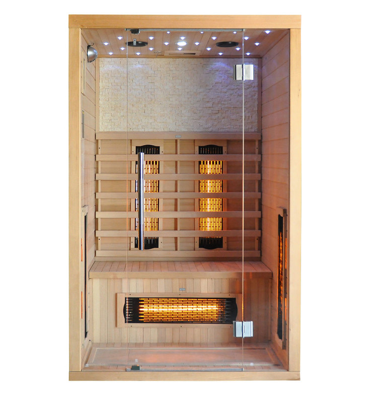 | Дополнительные характеристики | Нагреватели с ИК-лампой 5 шт и 1 карбоновый обогреватель на полу, Материал Канадский хемлок , Число ИК нагревателей: 6 (2 для верхней части тела + 4 для ног), Диапазон температур 18-65 °C , Мощность 1,75 квт 220вт |