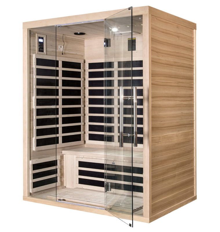 | Дополнительные характеристики | Инфракрасные сауна с карбоновыми излучателями: Материал Канадский хемлок, Диапазон температур 18-65 °C, Мощность 2,22 квт 220вт, Число ИК нагревателей: 11 (7 для верхней части тела + 4 для ног). |
