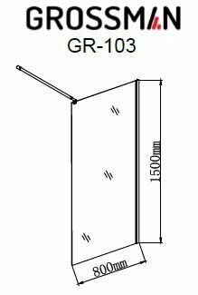 Шторка для ванны Grossman GR-103N (150*80) алюминиевый профиль, стекло ПРОЗРАЧНОЕ 6мм 1 место