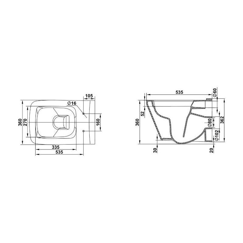Унитаз Керамин Милан (консольный с жестким сиденьем)