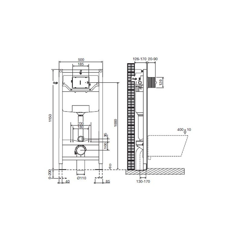 Унитаз с инсталляцией Jacob Delafon Odeon Up E4764-00+E5504-NF+кнопка E4326-CP