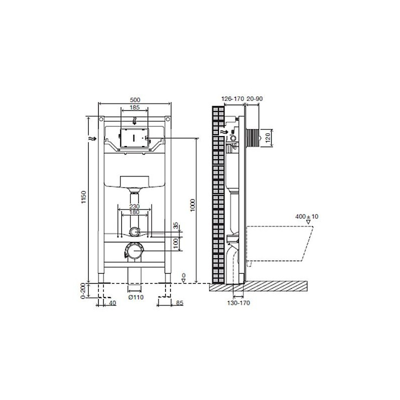 Унитаз с инсталляцией Jacob Delafon Presquile E4440-00+E5504-NF+кнопка E4316-CP