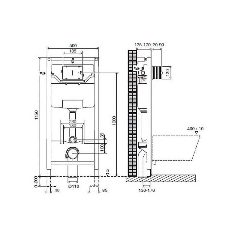 Унитаз с инсталляцией Jacob Delafon Presquile E4440-00+E5504-NF+кнопка E4326-00