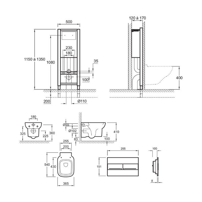 Унитаз с инсталляцией Jacob Delafon Replay E4833-00+E5504-NF+кнопка E4316-00