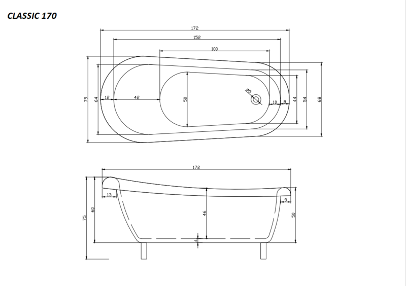 Ванна акриловая отдельностоящая Cerutti SPA CLASSIC 170 на львиных алюминиевых хромированных лапах (1700x790x750)