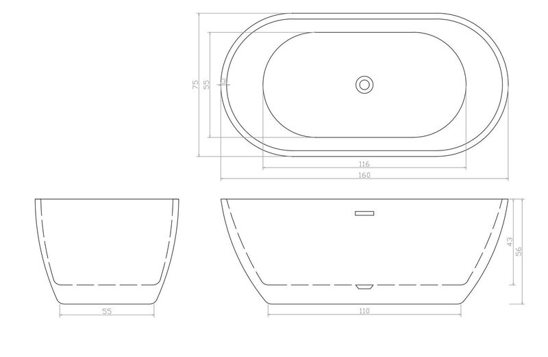 Ванна акриловая отдельностоящая Cerutti SPA d'ISEO 160 белая, со сливом-переливом (1600x750x560)
