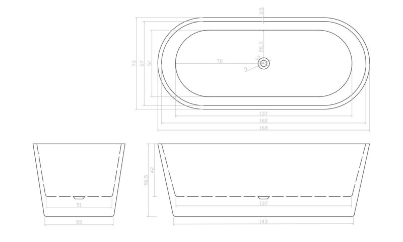 Ванна акриловая отдельностоящая Cerutti SPA RESIA MB черная матовая (1680x730x600)