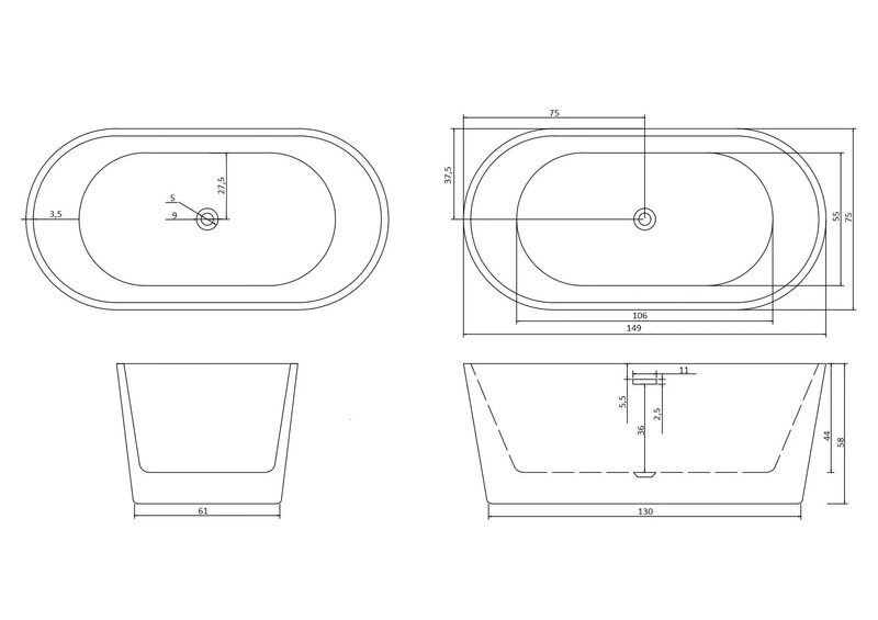 Ванна акриловая отдельностоящая Cerutti SPA RESIA150 (1500x750x580)