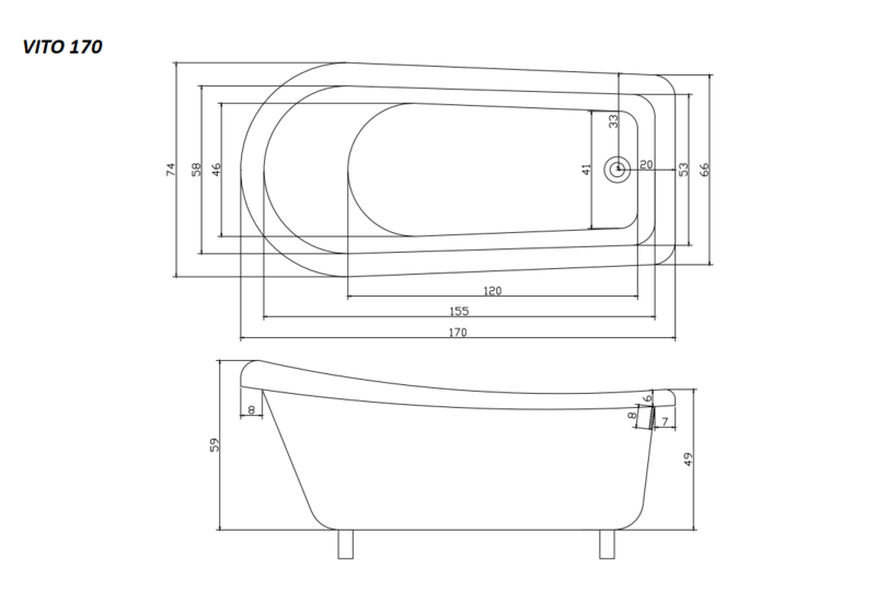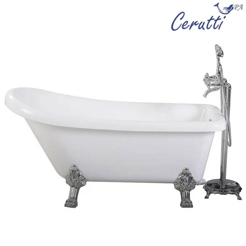 Ванна акриловая отдельностоящая Cerutti SPA VITO 170 на львиных алюминиевых хромированных лапах (1700x740x750)