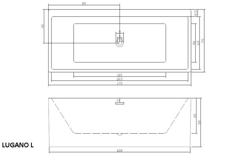 Ванна акриловая приставная Cerutti SPA LUGANO L (170х750х580)