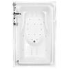 | Дополнительные характеристики | Функциональные возможности: тип управления-электронное; гидромассаж-есть, количество форсунок 6; аэромассаж-есть, количество форсунок 12; дезинфекция-нет; озонирование-нет; подводная подсветка-нет; многоцветная подсветка-нет; особенности-съемная фронтальн |