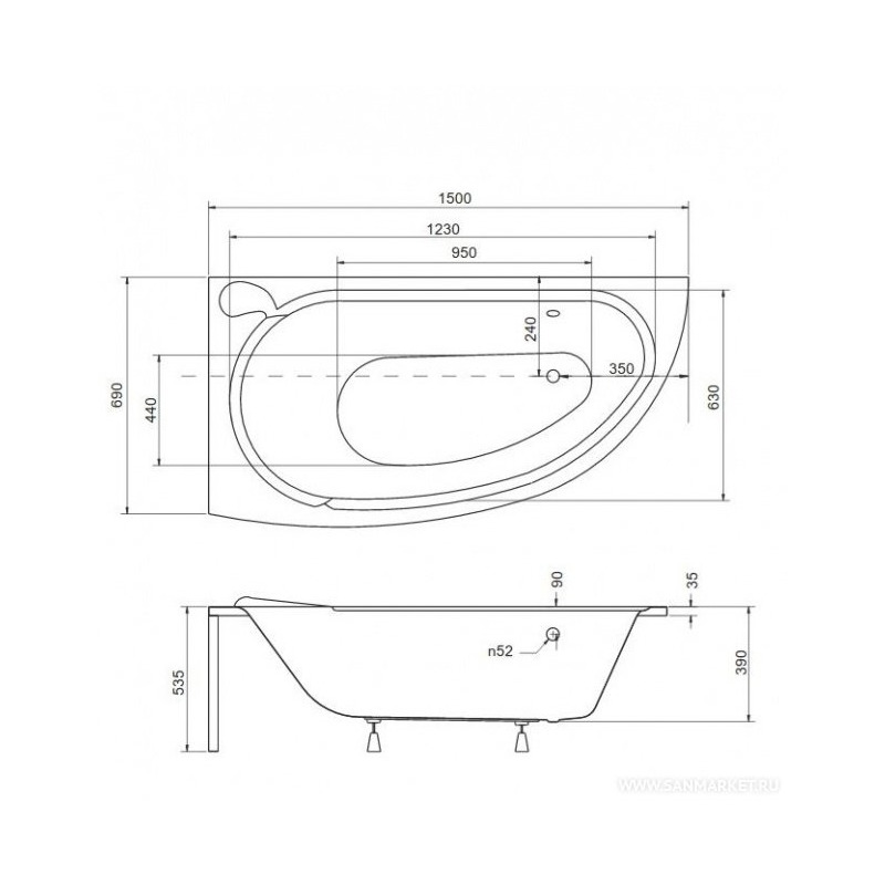 | Форма ванны | нестандартная |