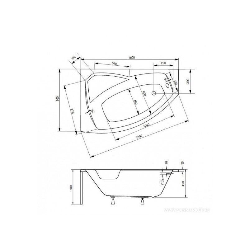 | Форма ванны | нестандартная |
