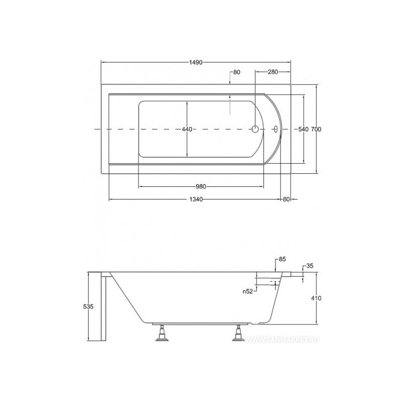 | Форма ванны | прямоугольная |