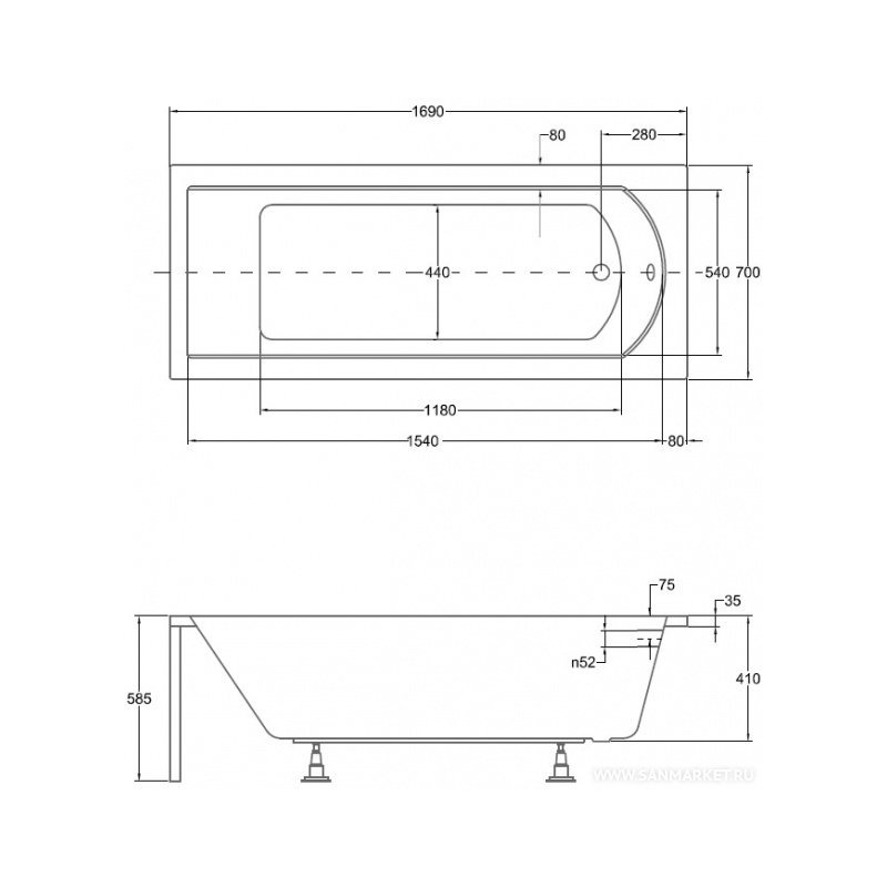 | Форма ванны | прямоугольная |