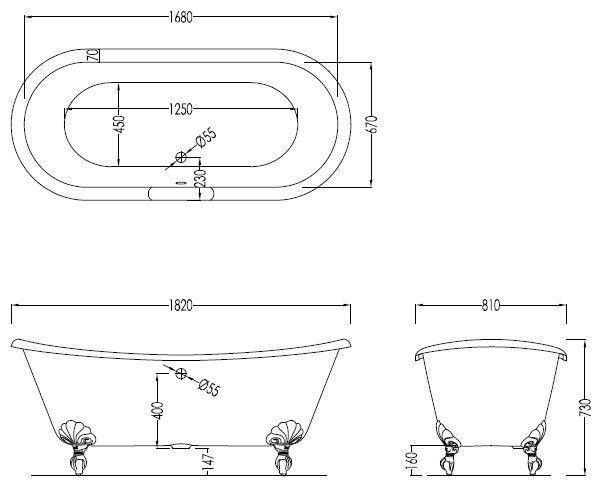 Ванна Devon&Devon ADMIRAL 182 without holes Eagle polished aluminium
