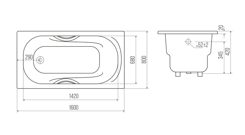 Ванна Goldman Nova 160x80x42 с ручками