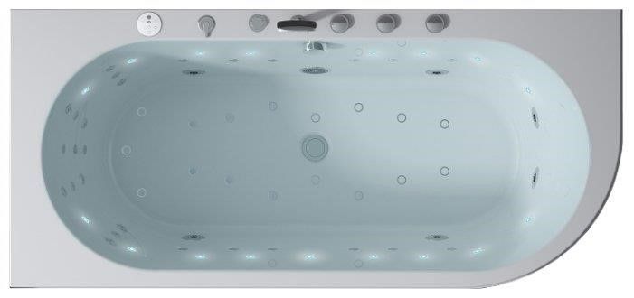 | Дополнительные характеристики | Функциональные возможности: гидромассаж-есть, аэромассаж-есть, подсветка LED, слив/перелив, смеситель с тремя рукоятками, ручной душ, налив воды, подогрев воды, озонизация, радио, bluetooth, особенности-съемная фронтальная панель, регулируемая высота ноже |