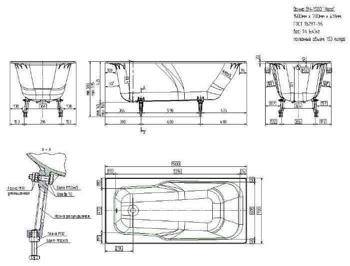 | Дополнительные характеристики | Функциональные возможности: дезинфекция-нет; озонирование-нет; подводная подсветка-нет; многоцветная подсветка-нет; особенности-регулируемая высота ножек; вес-94 кг; опции: подголовник; ручки; ножки. |