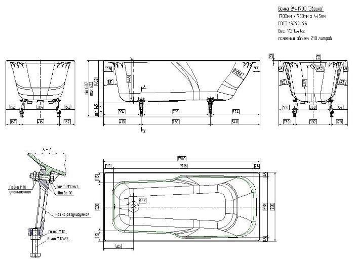 Ванна Универсал ВЧ-1700 Эврика