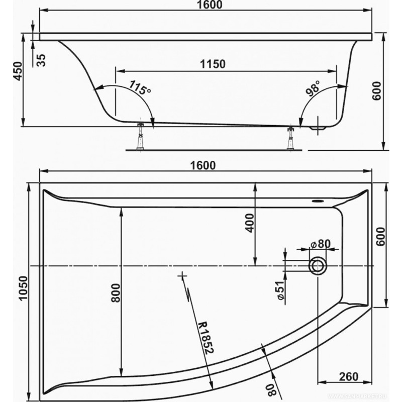 Ванна VAGNERPLAST VERONELA L 160x105 BIANCO
