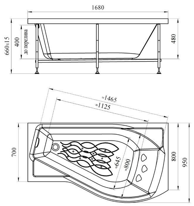 | Дополнительные характеристики | Функциональные возможности: дезинфекция-нет; озонирование-нет; подводная подсветка-нет; многоцветная подсветка-нет; особенности-съемная фронтальная панель, регулируемая высота ножек, установка на каркас, |