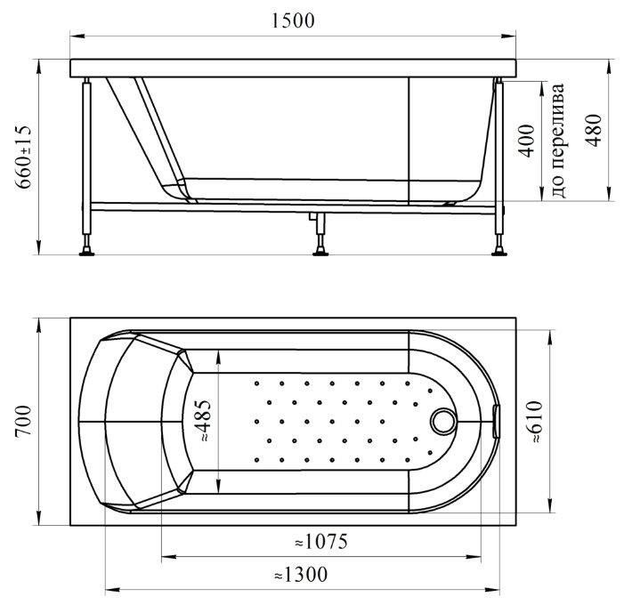 | Дополнительные характеристики | Функциональные возможности: дезинфекция-нет; озонирование-нет; подводная подсветка-нет; многоцветная подсветка-нет; особенности-съемная фронтальная панель, регулируемая высота ножек, установка на каркас, |